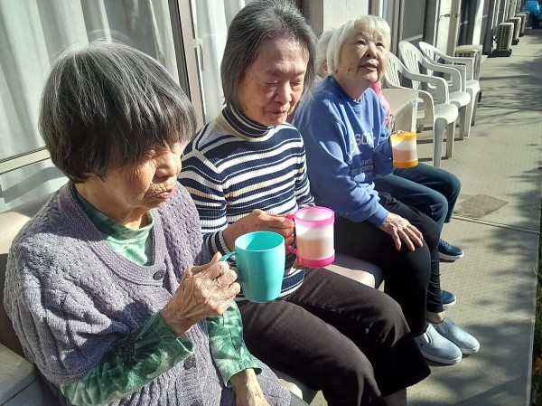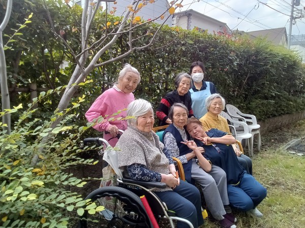 寒い日が続いていましたが、この日はとっても暖かく、お天気も最高に良かったので、ホームのお庭に出て、
