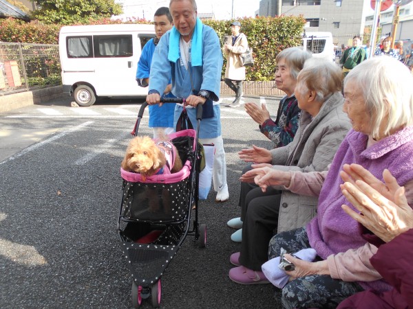 かけ声と共にお神輿がやってきました~!!ワンちゃんも見に来ていました(*^^*)