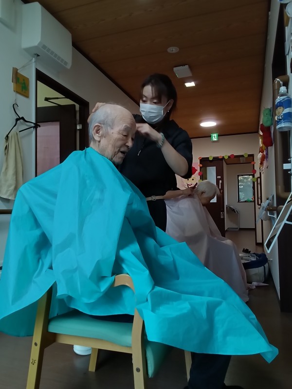 入居者様が毎回楽しみにされているので、スタッフもこの日のためにいつも以上に健康管理に気を使い入居者様は全員理美容を