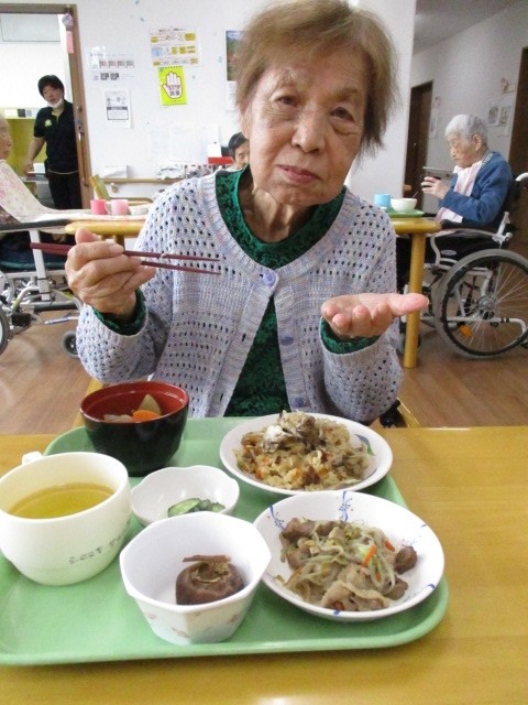 今日は秋をイメージして昼食会レクを行い、昼食を作りました。 召し上がられているご様子をお知らせいたします!!