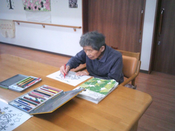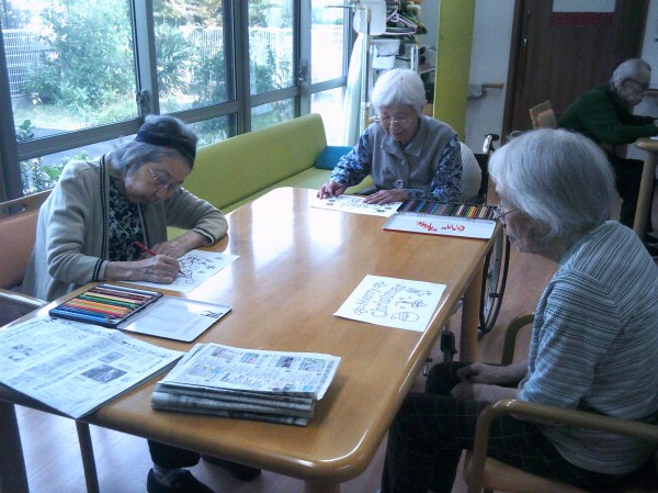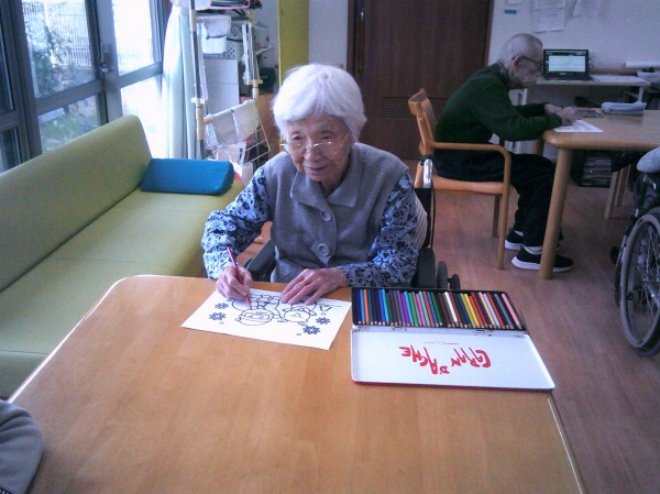 なかなか進まないね? 何色に塗ったらいいか分からなくなっちゃったわ(笑) お喋りされながら楽しそうに塗り絵を行っていました。