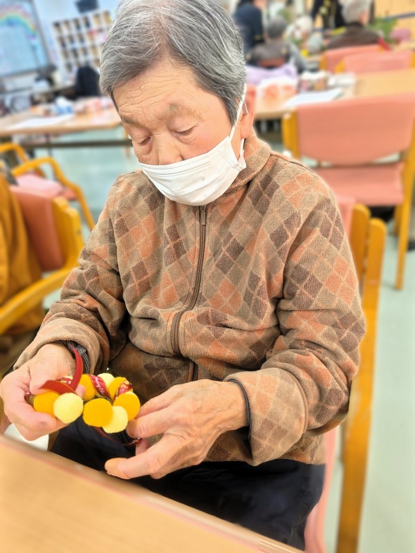 大変な思いをしながらもなんとか12個のポンポン全て通しきったら