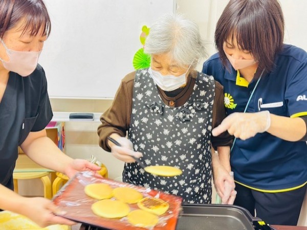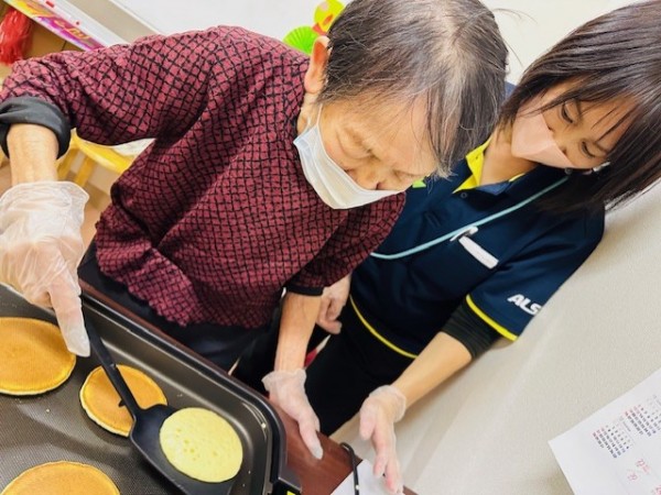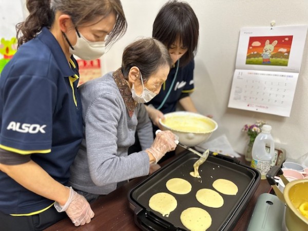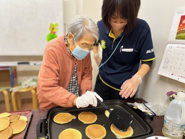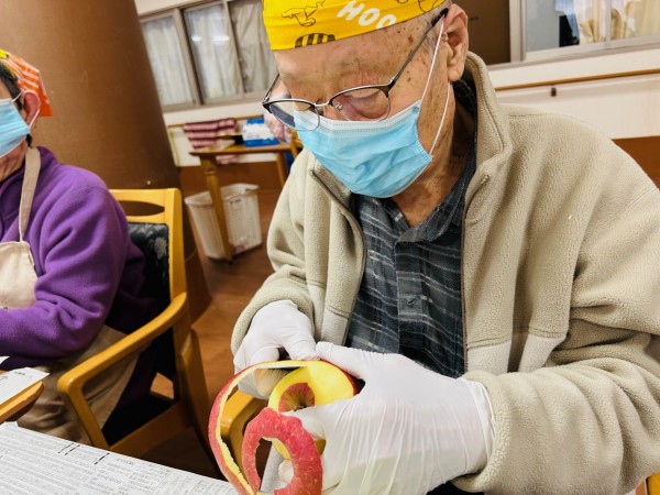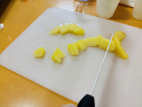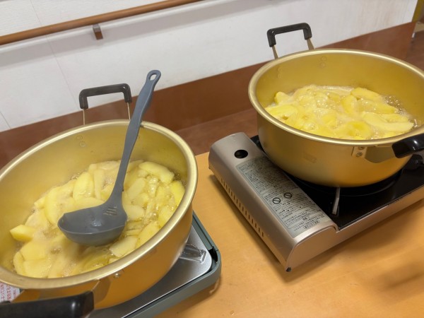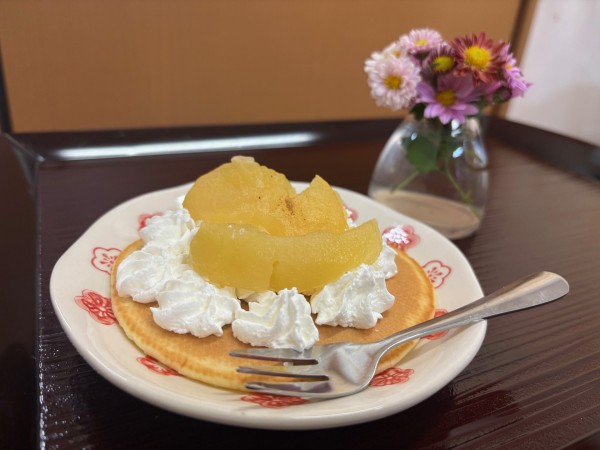今月の料理レクは「りんご煮 ~ふんわりパンケーキにりんごのやさしい甘さを~」です