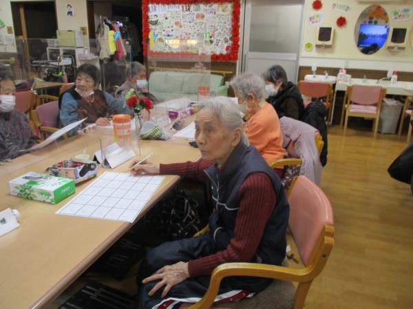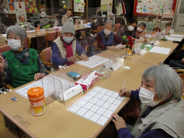 本日午後のレクリエーションは「手作りビンゴ」です。