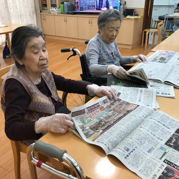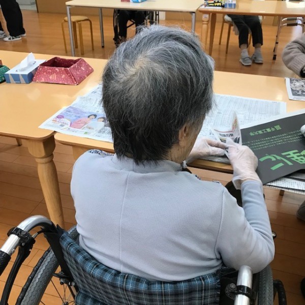 先日、スタッフの仕事のひとつである“新聞折り”を