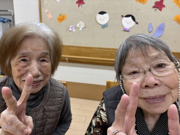 カメラを向けるとノリノリでピースサインをして下さったお母様方!お話も面白く明るい笑顔に元気を頂いております!
