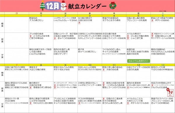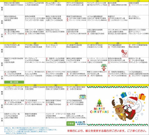 今日は「12月の献立表」をご紹介したいと思います(*‘ω‘ *)