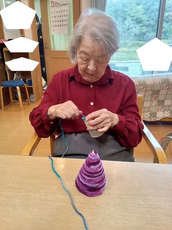 もうすぐクリスマス、今年もクリスマスを感じるように飾り作りです。
