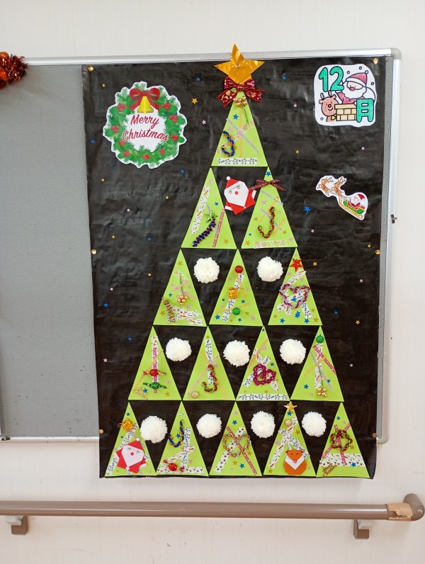 先日クリスマス飾りの製作の様子をお届けいたしましたが、今回は完成披露です(^^♪