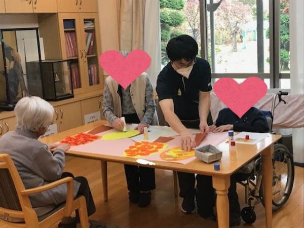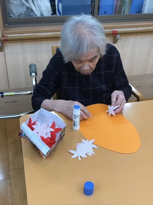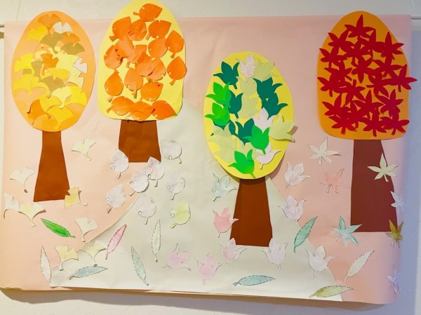 他にも画用紙に切ったもみじ等を貼っていきました(≧▽≦)