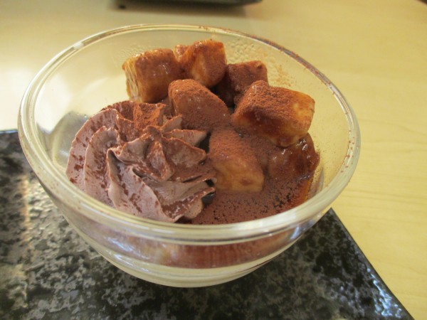 チョコの香りとバナナの甘みが加わり、見た目にも可愛らしい“ご褒美プリン”に大変身しました。