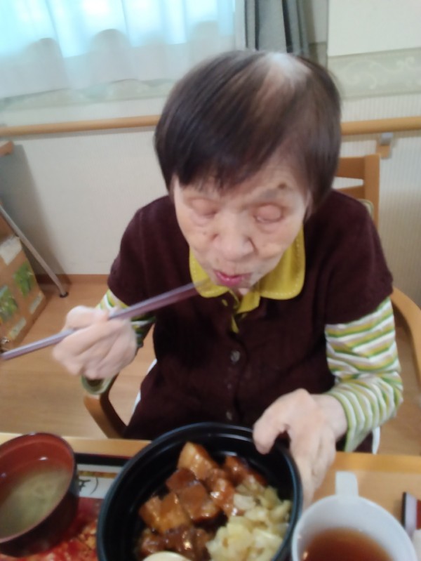 「豚の角煮丼、好きなのよ~。とっても美味しいです」と仰りながら召し上がっていらっしゃいました。