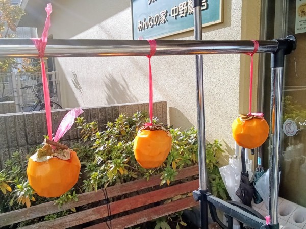 グループホームみんなの家・中野鷺宮で、なんと「干し柿」作り