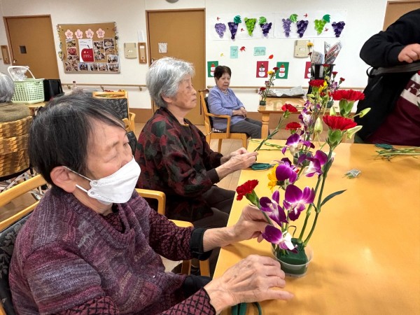 先日有償サービスで南中丸では初めてのフラワーアレンジメント教室が開催!