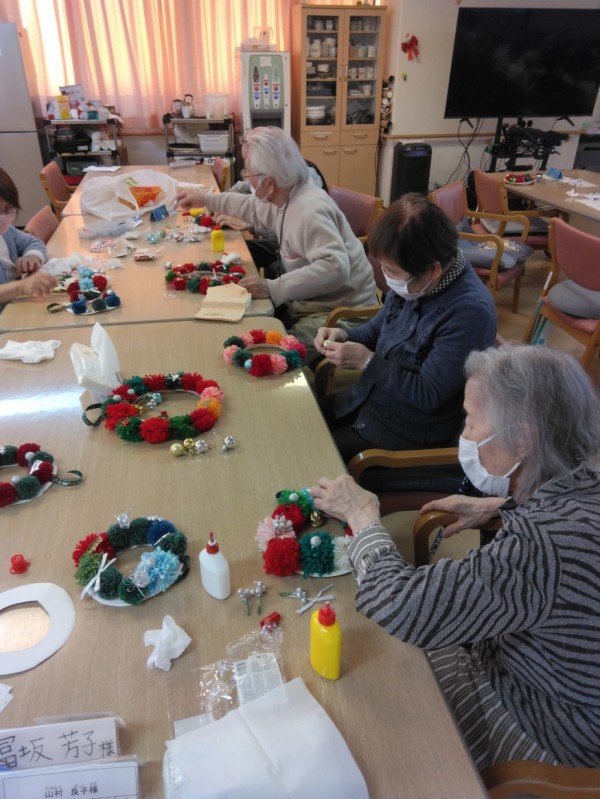 12月のクリスマスに向けて、クリスマスリース作りを行いました(*^^*)