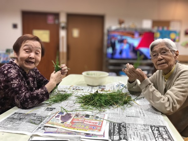 師走の始まりに、庭のニラを収穫しました! ~ グループホームみんなの家・横浜三保の介護ブログ ~