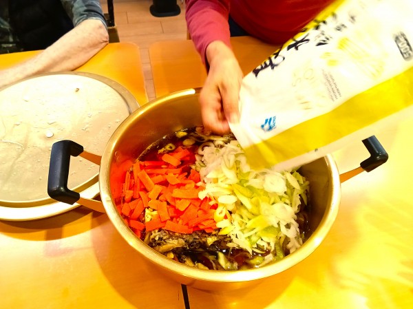 お昼ご飯に、だまこ鍋の提供をめざして