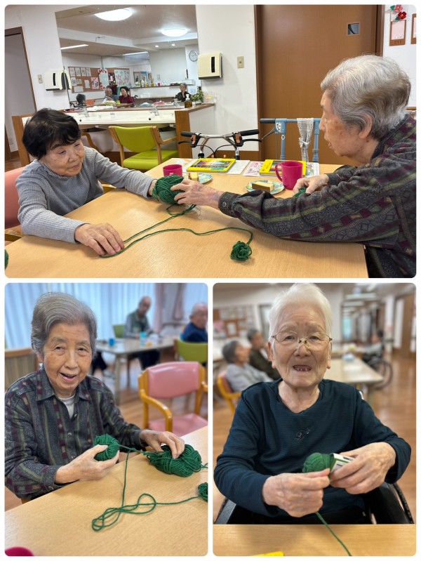 ◉毛糸を巻く、縛る、結ぶなどの作業を通じ、手指の巧緻性の維持・向上を図る。