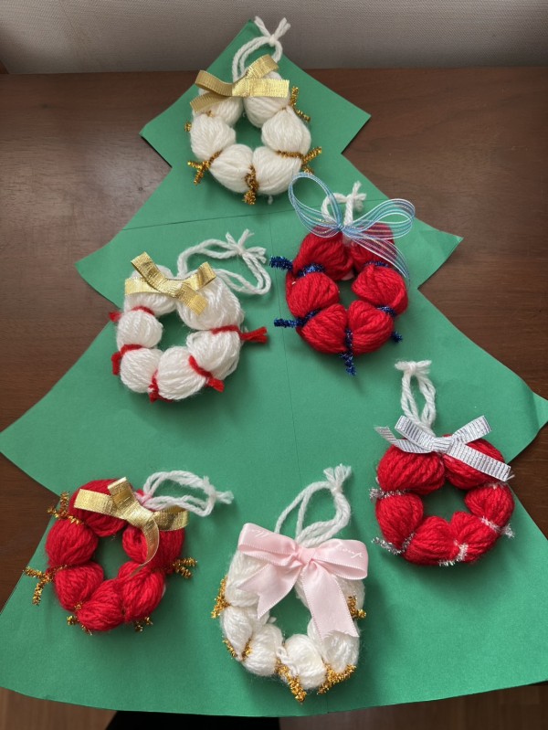 クリスマスカラーの毛糸で『ミニリース』を作って頂きました⭐︎