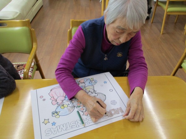 今日は塗り絵を行いました。そのご様子をお知らせいたします!!