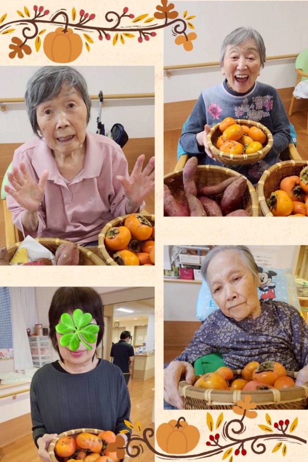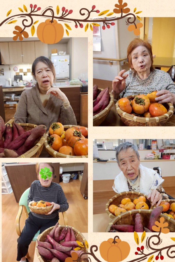 この日は秋の味覚である柿とさつまいもを手に皆さまと一緒に写真を撮りました(^^)