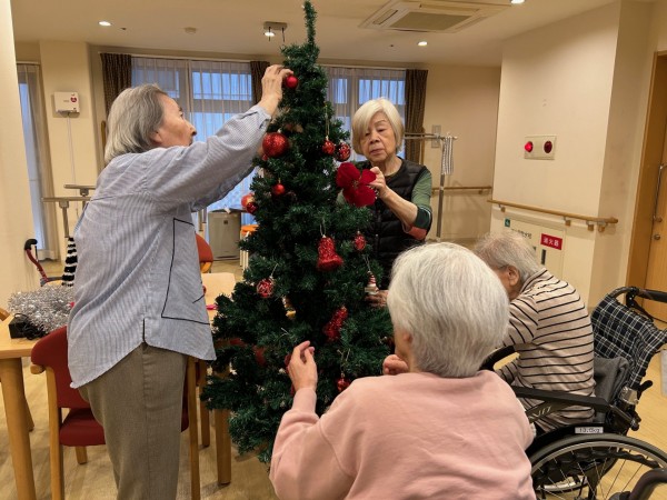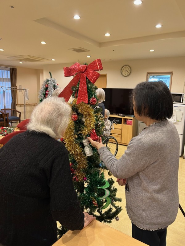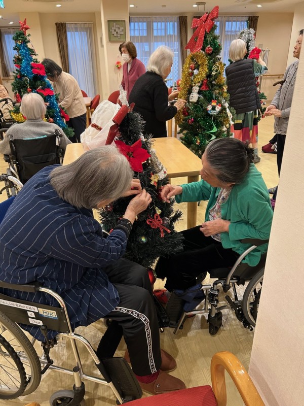 ツリーの飾り付けは、ご入居者の皆さまと一緒に行いました。
