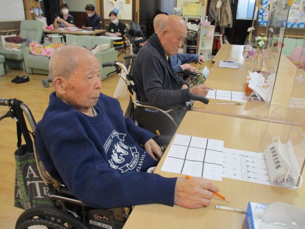 本日午後のレクリエーションは【手作りビンゴゲーム】を行いました。