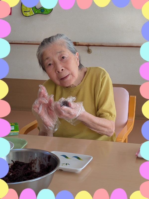 おはぎはご自身で形を整えて粉をトッピングしていただきました。
