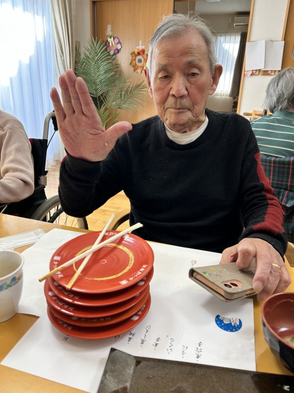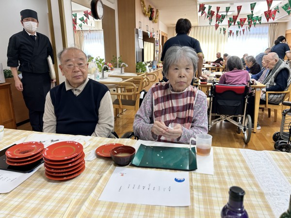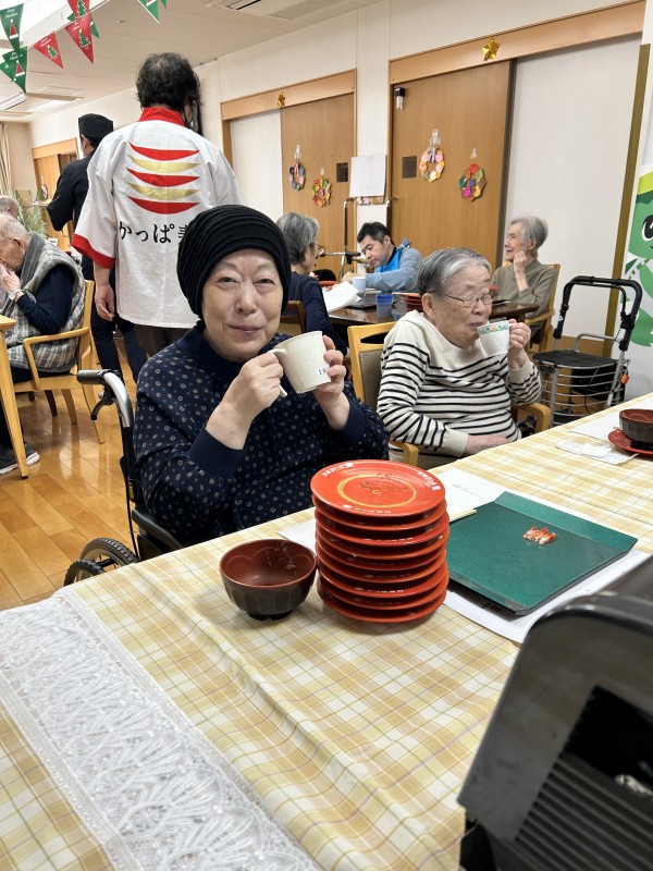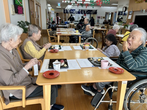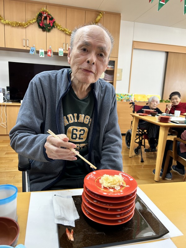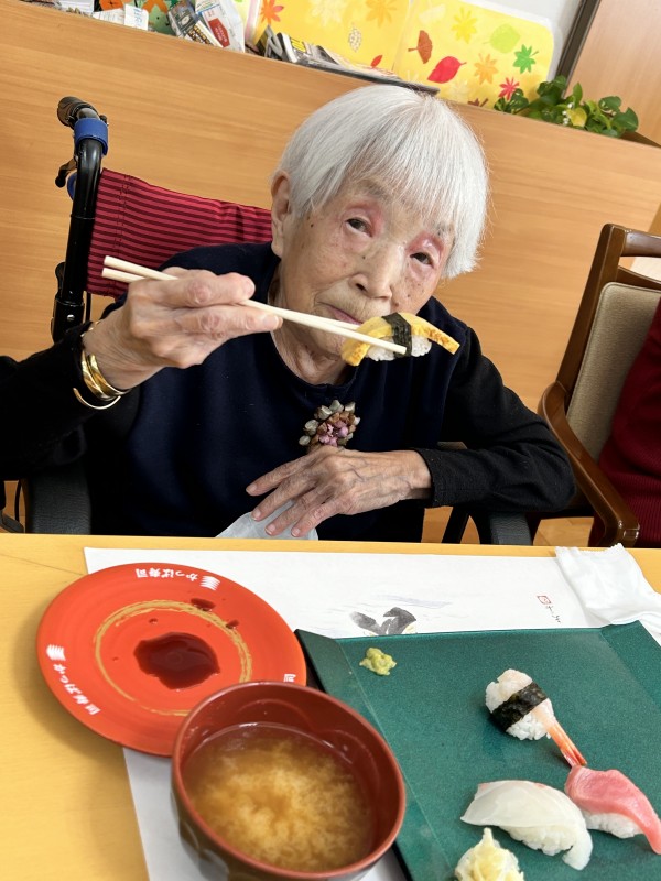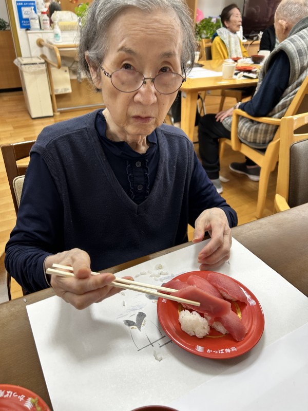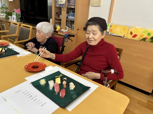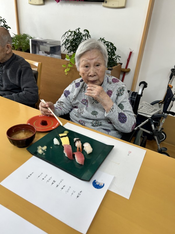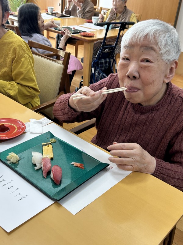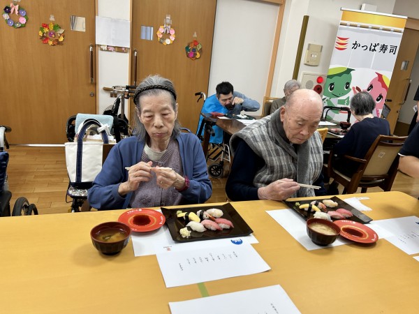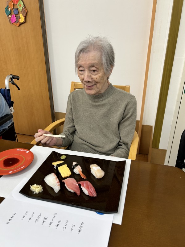 の声に迎えられて入居者様が続々とお寿司屋さん会場にやってきました。