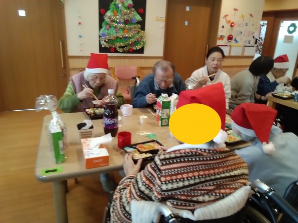 昼食はスタッフ特製の豪華クリスマスメニュー!デザートには手作りケーキ付き!