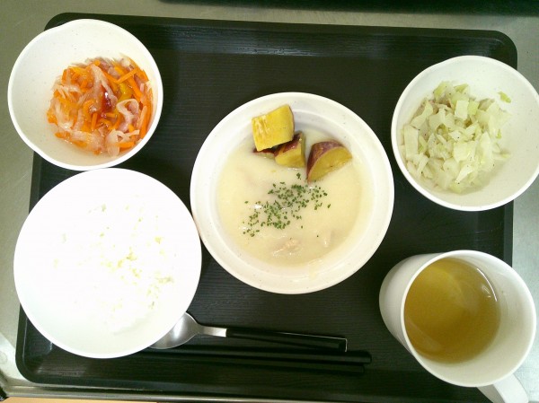今回はそこに、ほくほくのサツマイモも入っており、心も体も温まりそうなお食事でした(*^-^*)