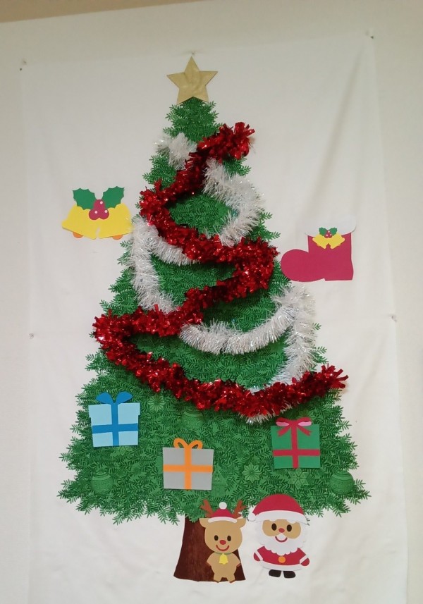 ツリーもでき、様々な壁面制作や飾りをつけ、