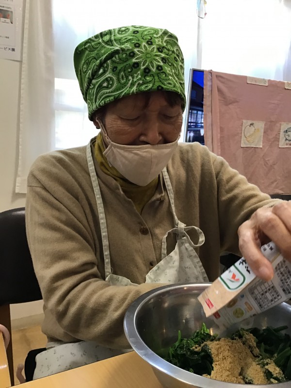 副菜のほうれん草の胡麻和えも利用者様におねがいします♪