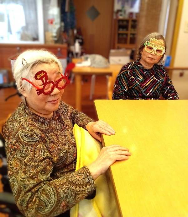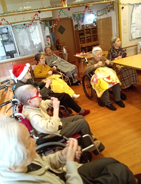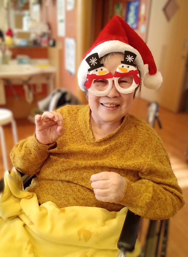 ご入居者様にはサンタクロースの帽子や かわいらしいクリスマスグッズを身に着けて