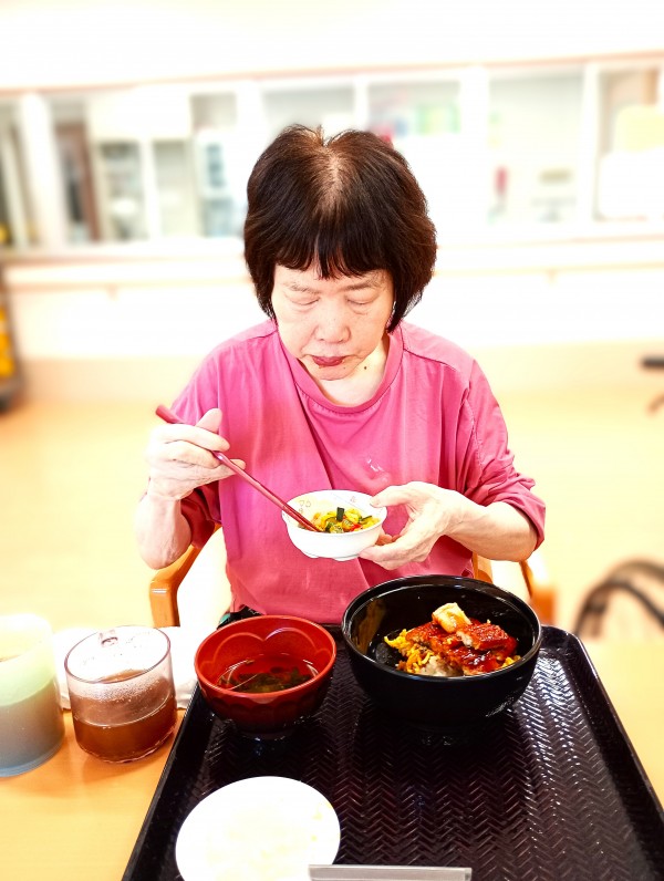 ★☆三橋6丁目の昼食•鰻ウナギうな丼♬イベント食‼特別メニュー丑の日②階♬鈴木勝也ホーム長!舌鼓大絶賛2025年令和7年✨ 『みんなの家 三橋6丁目 介護ブログ』☆★