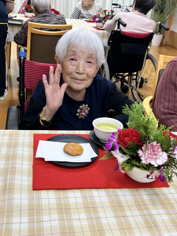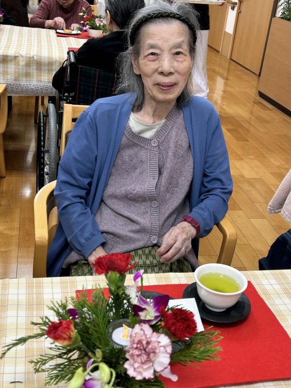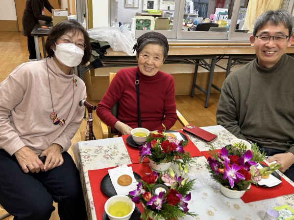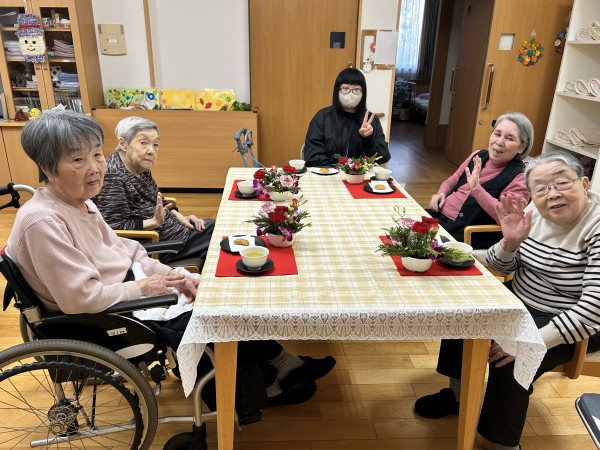 完成したアレンジのお花を見ながらのお茶タイム