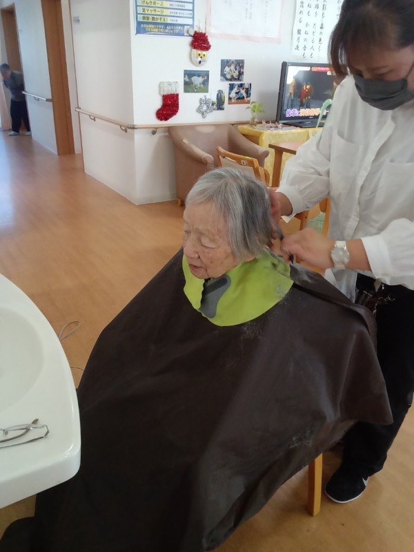 慣れ親しんだ環境の中で、職員が一人ひとりの様子を確認しながら対応し、皆さま安心した表情で散髪の時間を過ごされていました。髪を整えることで気持ちもすっきりされ、「さっぱりしたね」と笑顔が見られるひとときとなりました。