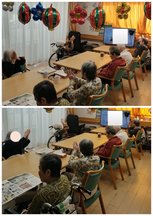 歌いながらリズミカルに体操され楽しく参加されました(*^^)v