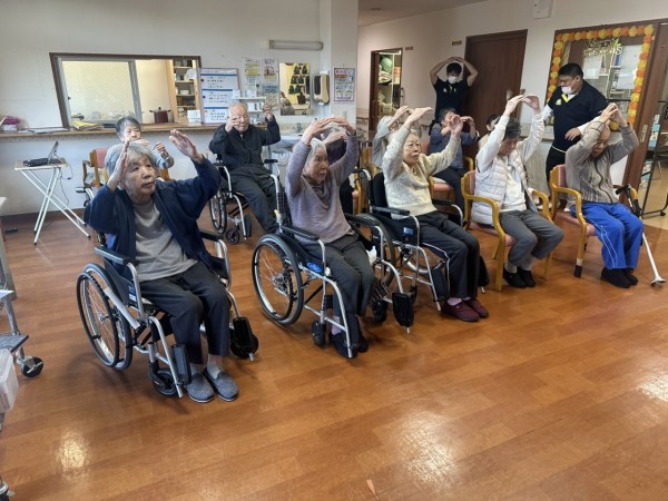 最初は寒い寒いとおっしゃっていたご利用者様も、体を動かしているうちに体が温まってきたようで、穏やかな表情で体操に参加されていました(*^^*)