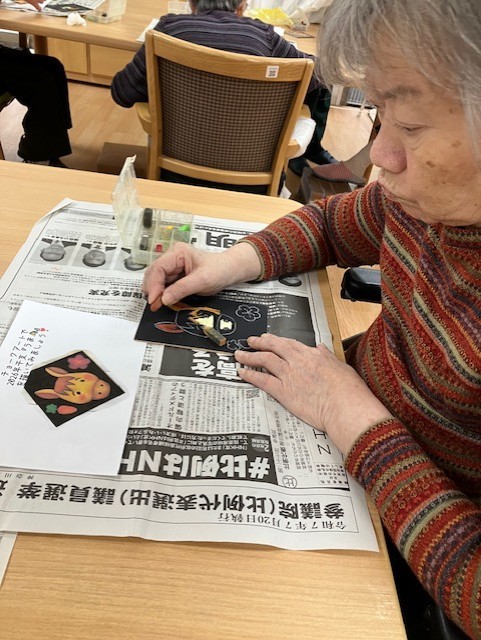 来年の干支、可愛い馬を夢中になって塗ってらっしゃいました。