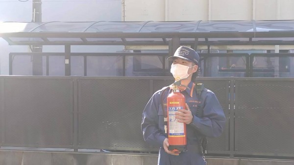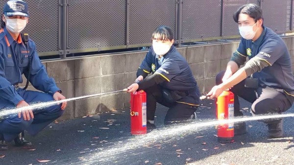 消火器の扱いを学びます。