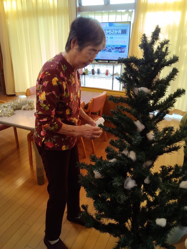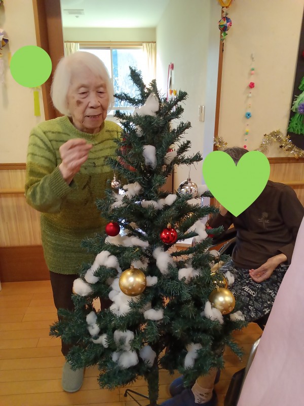 ご利用者様と一緒にオーナメントを飾りました(^_-)-☆