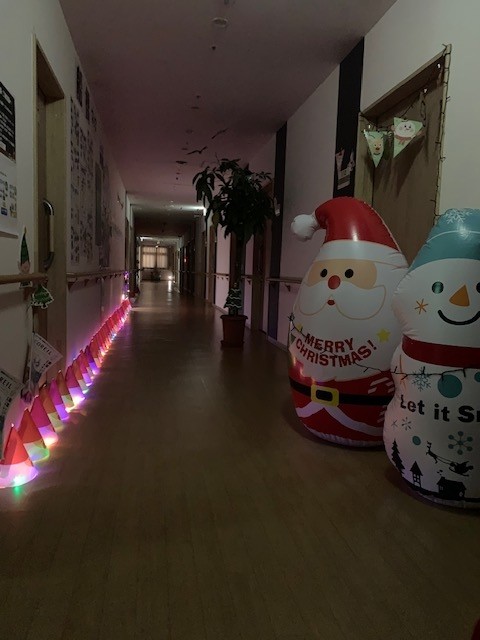 事務の職員さんから「このサンタさん達を光らせたい!」と言われ思いつきました!