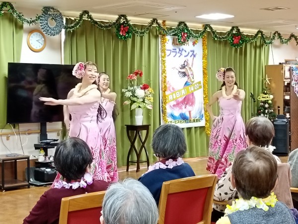 今回は、先日行われました1Fデイサービスと合同にて、フラダンスイベントが