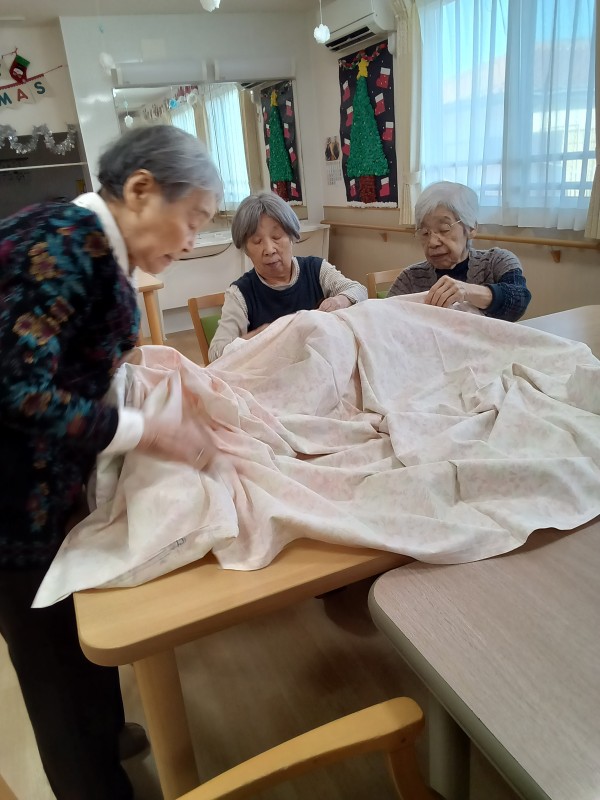 入居者様に掛布のシーツを交換を手伝って頂きました!