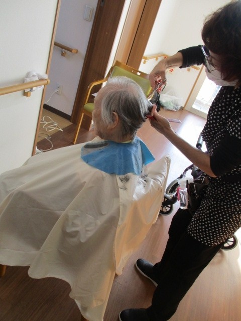今日は2階で訪問理美容(カット)が行われました。 そのご様子をお知らせいたします!!