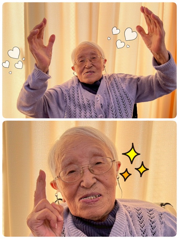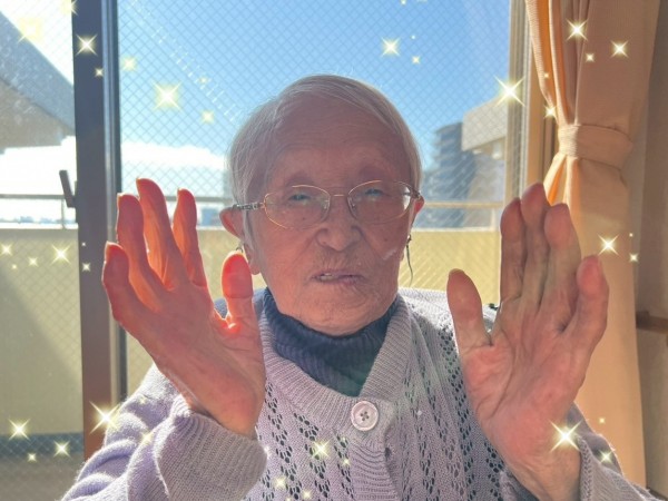 優しいお母様は、私たちのお願いも快く受けてくださいます。お写真のポーズをお願いすると、この通り!お誕生日を迎えられた喜びと、これからも元気に過ごすぞ!という意気込みが溢れています!
