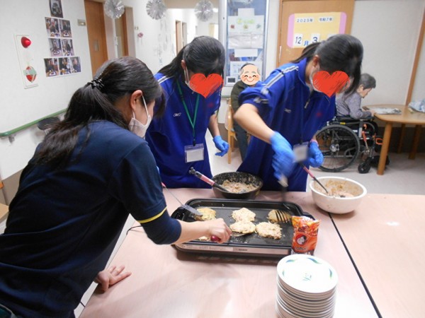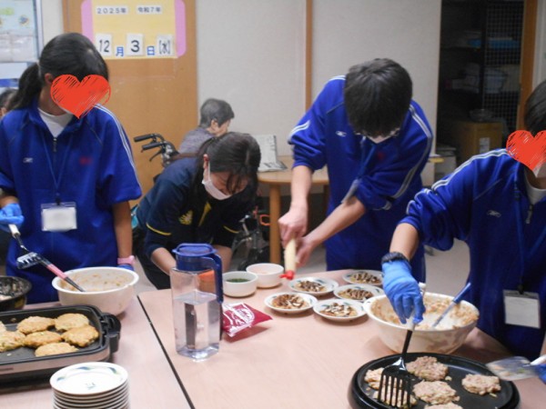 中学生がお好み焼きを…