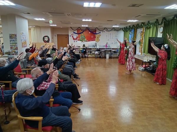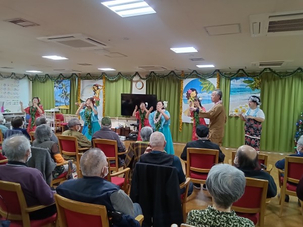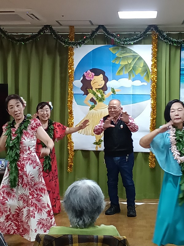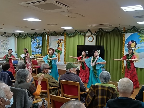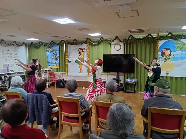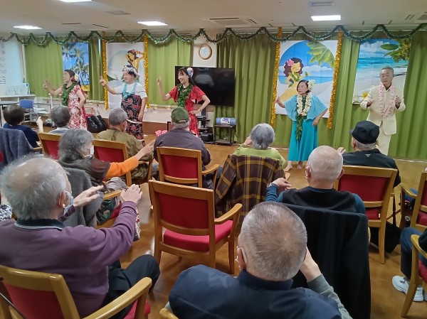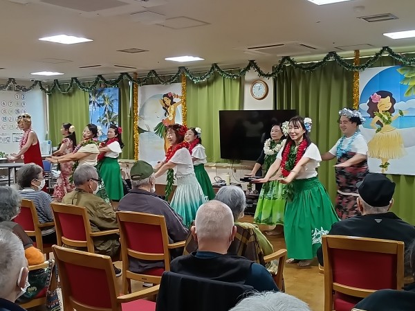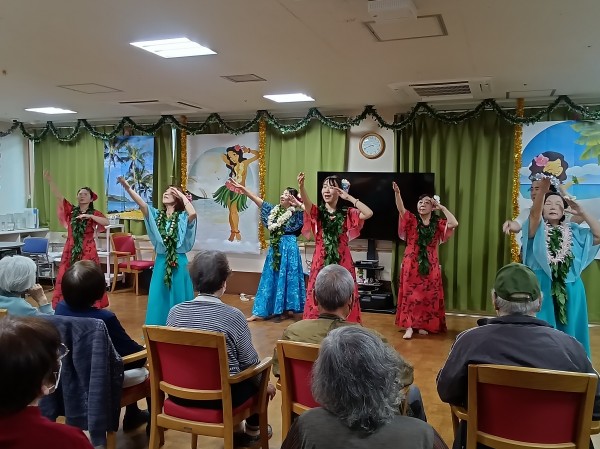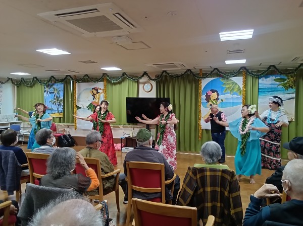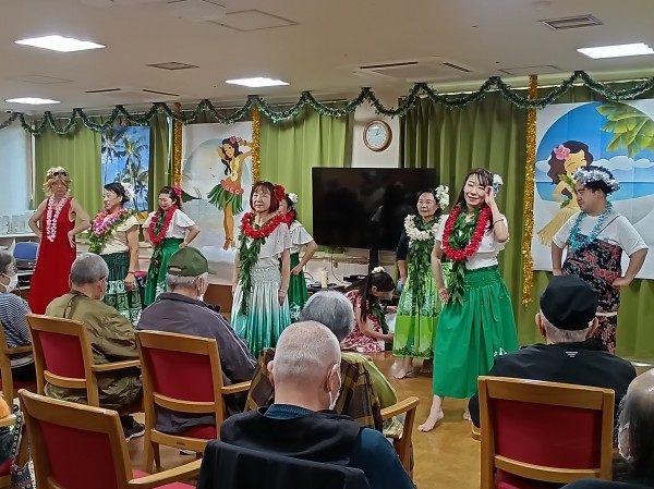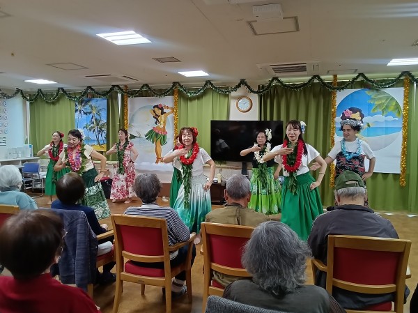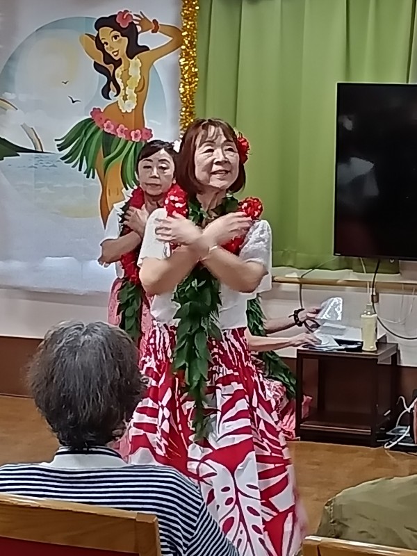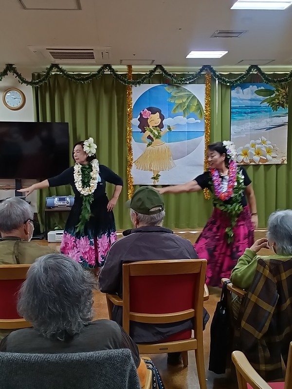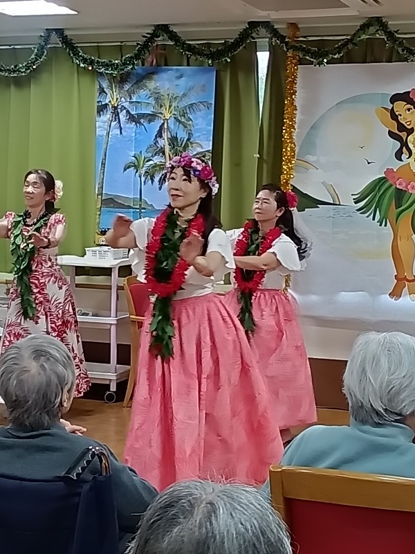 上階の「すこや家・東浦和」の元職員さんが、フラダンスチームを率いて来てくださいました(*^▽^*)