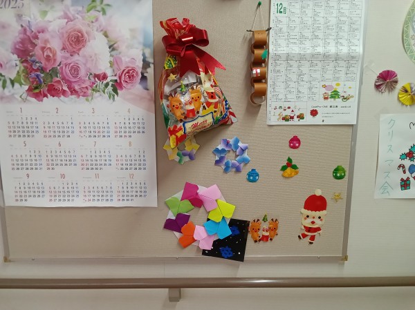 もう少しで歳の瀬でもその前にXmasのイベントがありスタッフも色々と悩んだり試行錯誤しながら飾り付けや何をプレゼント?とか、ない頭をひねりまくっていました( *´艸`)手作りのリースも1人のスタッフがコツコツと暇を見つけては作成していました。それもご入居者様の笑顔を見たいからと。。。泣けます( *´艸`)( ノД`)シクシク…頭が下がります。